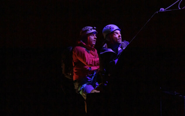 Il testo, scritto dall’autore scozzese David Greig, si muove continuamente tra quello che è successo in montagna e quello che i protagonisti provano anni dopo. Si parla di amicizia, di grandi sensi di colpa e della capacità di rialzarsi dopo un colpo durissimo, cercando di capire cosa spinga le persone a rischiare così tanto per una passione. Lodo Guenzi, che dopo il successo con la band Lo Stato Sociale si sta dedicando molto alla recitazione, interpreta proprio l’alpinista caduto nel dirupo, portando in scena i dubbi e la fatica di chi deve cavarsela da solo contro la natura.